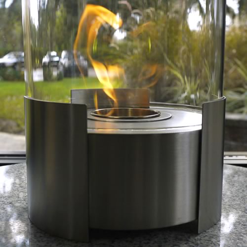 This is certain to be your favorite center piece. Standing over 20” tall this impressive portable tabletop fireplace features a brushed stainless steel base and stunning tempered glass cylinder encasing the flames. Caldo tabletop bio-fireplace may be used indoors or out, however do not leave your fireplace outside exposed to the elements after use. Ships with snuffer. Fuel not included, we recommend using Nu-Flame Bio-Ethanol Fuel.