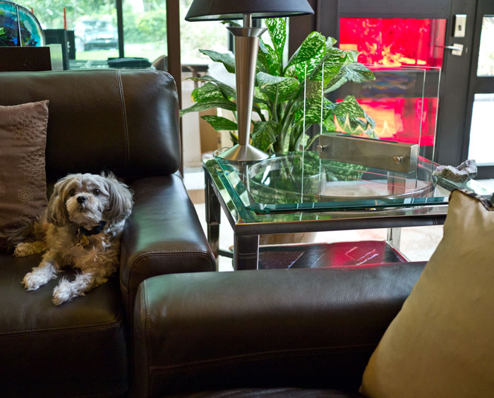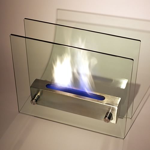 Modern in every sense of the word, Irradia is our most popular tabletop fireplace. A brushed stainless steel burner floats between two tempered glass panels making the fire visible from every angle. The linear burner creates a ribbon of fire that dances and drifts producing an almost hypnotic appearance.