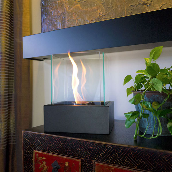 "Lampada" Italian for lamp light is one of our newest tabletop fireplaces. Lampada is the perfect centerpiece or gathering point for friends and family. A beautiful way to add luxury and warmth making it the perfect gift to give or receive! The colorful flames stand out against the classic black body and safely behind the tempered glass windscreen... beautiful and functional.